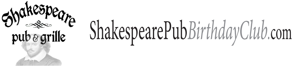 As a Birthday Club member you will receive an email on your birthday announcing a special surprise. Just present the email at Shakespeare Pub & Grill to enjoy your birthday surprise.